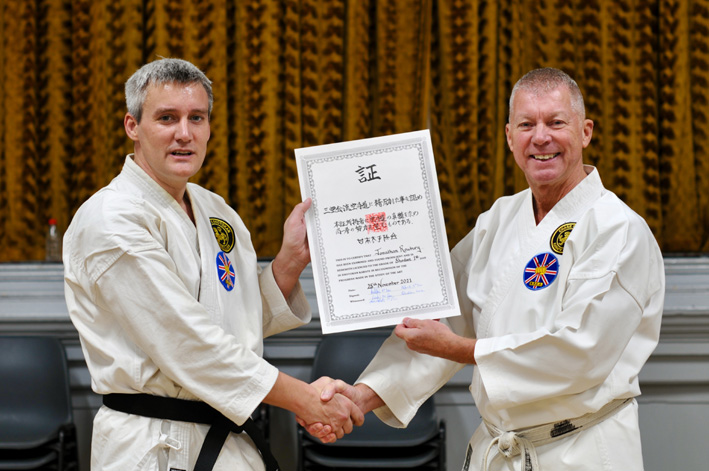 23rd June 2013 - BLACK BELT SUCCESSES Congratulations to Tony Gent who graded to 3rd Dan Black Belt, Robert Dorey and Steve Ayre to 2nd Dan Black Belt, and to Sean Moran who also successfully graded to Black Belt 1st Dan in front of Senior B.S.K.A. instructors on Sunday 23rd June 2013 at the Bournemouth SportBU. It took a gruelling 2 hours, where the participants had to workout, show their teaching abilities, perform various difficult movements from the Black Belt Grading syllabus, advanced Kata, followed by Kumite/free-fighting.